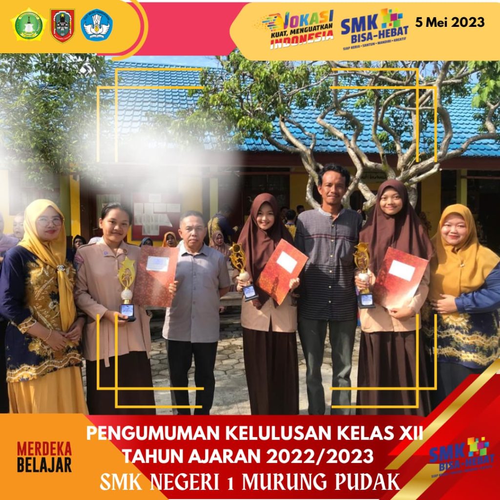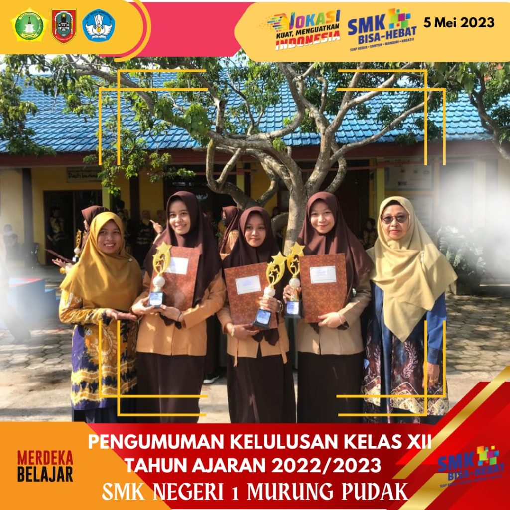 Murung Pudak – Pengumuman Kelulusan Siswa -Siswi kelas XII SMK Negeri 1 Murung Pudak, dilaksanakan pada hari Jumat, 5 Mei 2023. Sebelumnya para dewan Guru bersama Kepala Sekolah sudah melaksanakan rapat kelulusan pada hari Kamis, 4 Mei 2023. Hasil dari rapat tersebut yang diantaranya terdapat 6 Jurusan dinyatakan Lulus 100 persen.