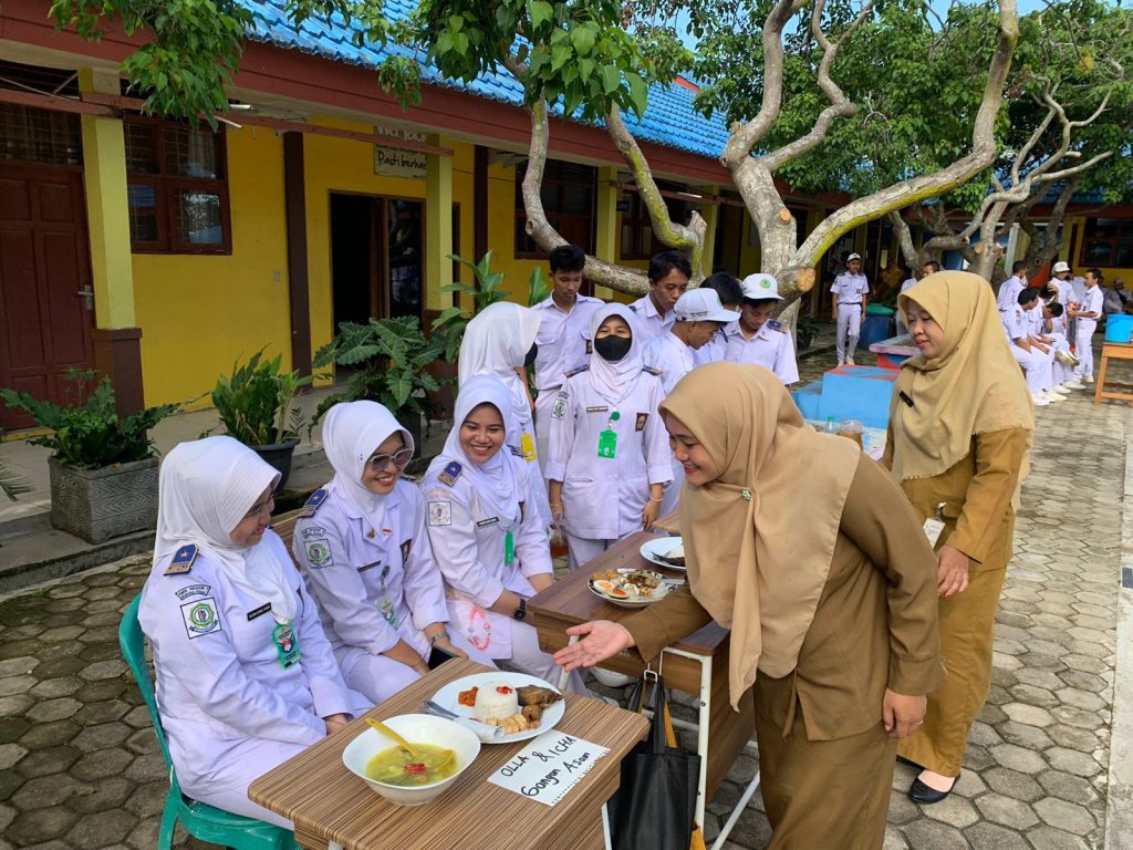 Para guru-guru juga antusias menyicipi masakan siswanya, acara berjalan lancar dan penuh tawa. Harapannya dengan praktik membuat masakan banjar para siswa lebih mengenal makanan khas-khas daerah banjar dan bisa di praktikan dikemudian hari.